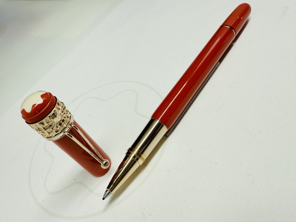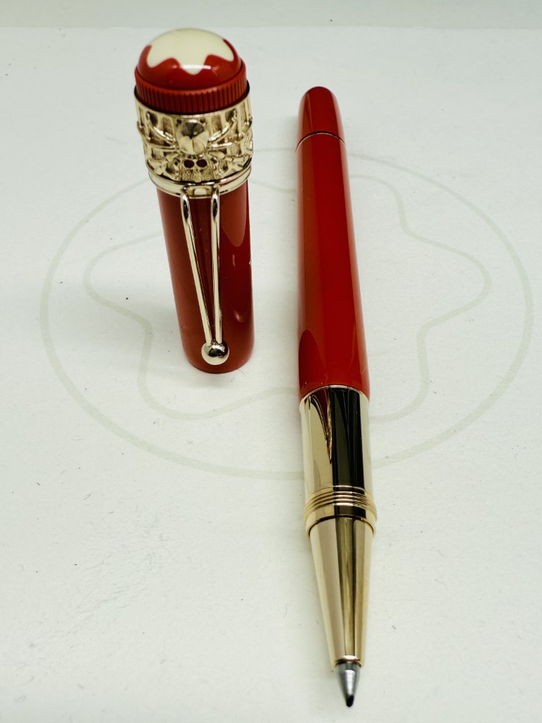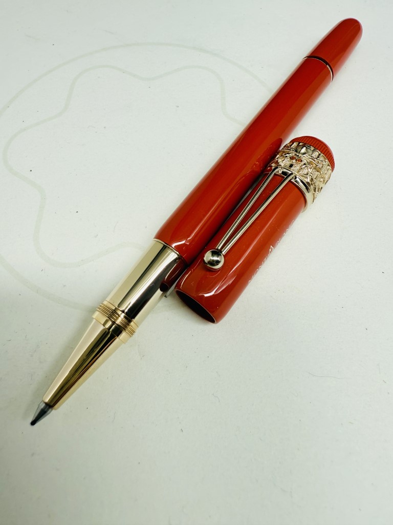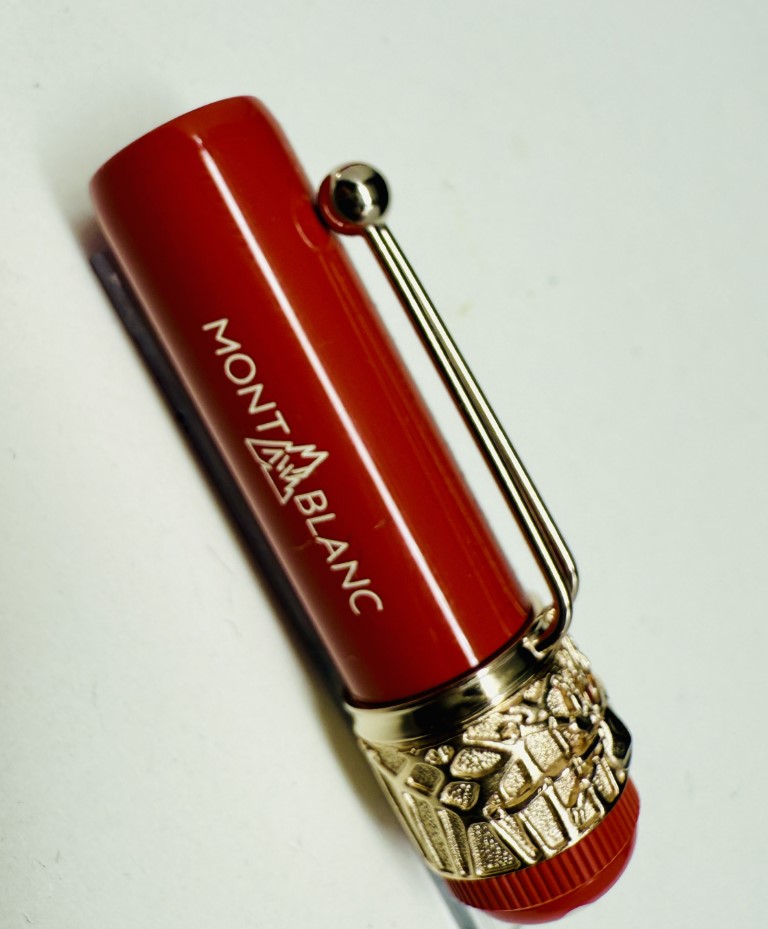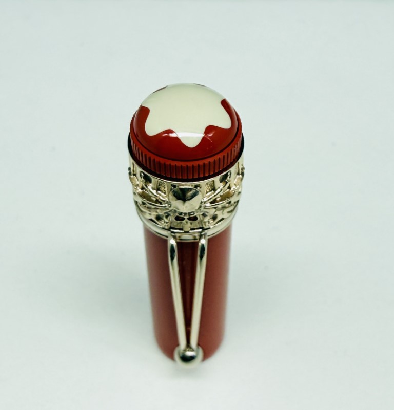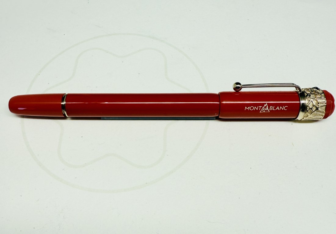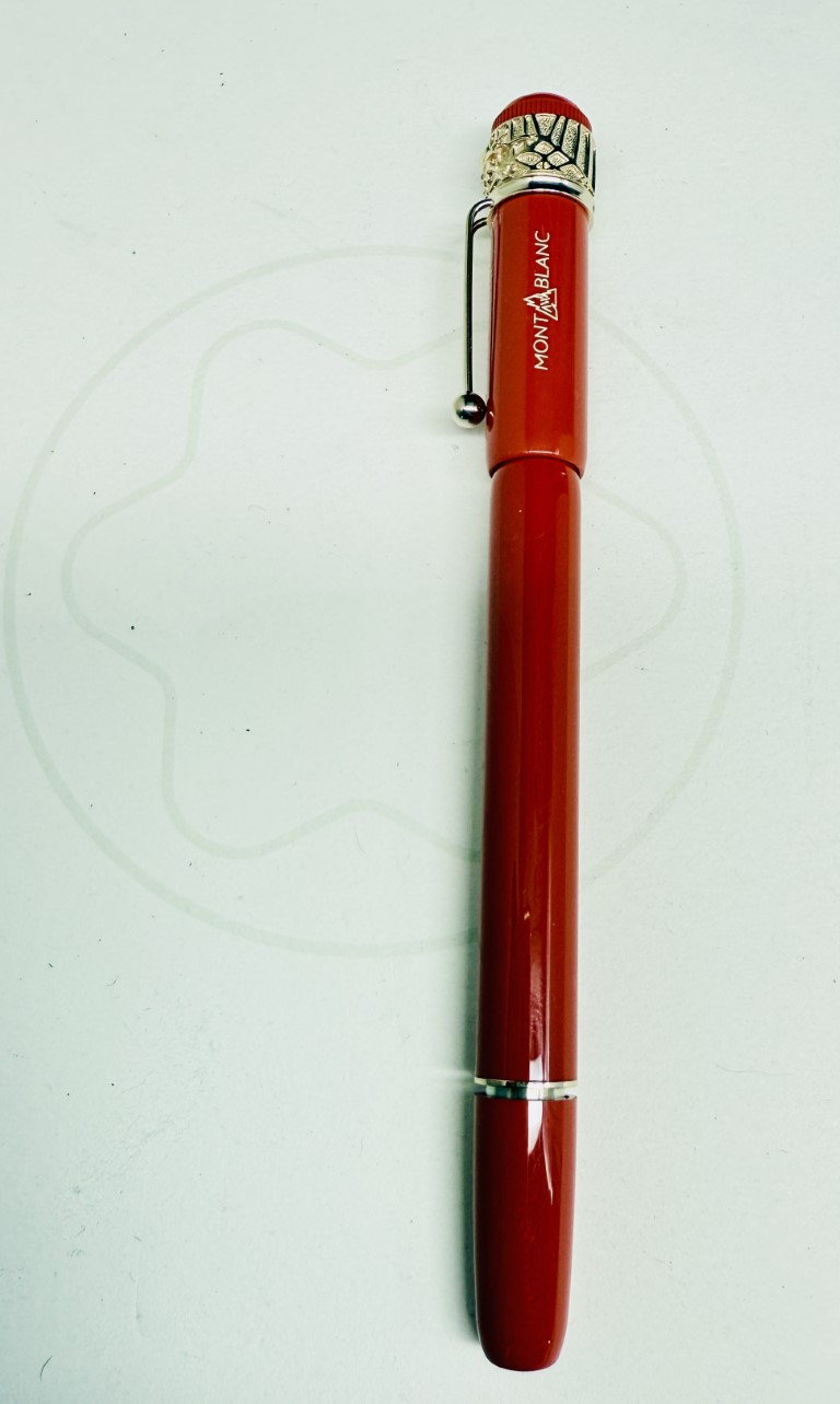 Sviluppato nel 1906, la penna di piuma “rossa e nera” che è una delle prime penne di piume realizzate a Montblanc, sorprese il pubblico dalla sua semplicità d’uso, che non richiedeva di immergere la fine in una bottiglia di inchiostro. Montblanc crea la collezione “Heritage” e offre penne direttamente ispirate alla sua penna di piuma storica, penne che possono quindi essere viste come i suoi discendenti. Ha un ragno retrò e attributi assortiti, testimoniando il know-how artigianale del marchio. La parte superiore del cappuccio, in resina di corallo e avorio, è coronata dall’emblema di Montblanc.